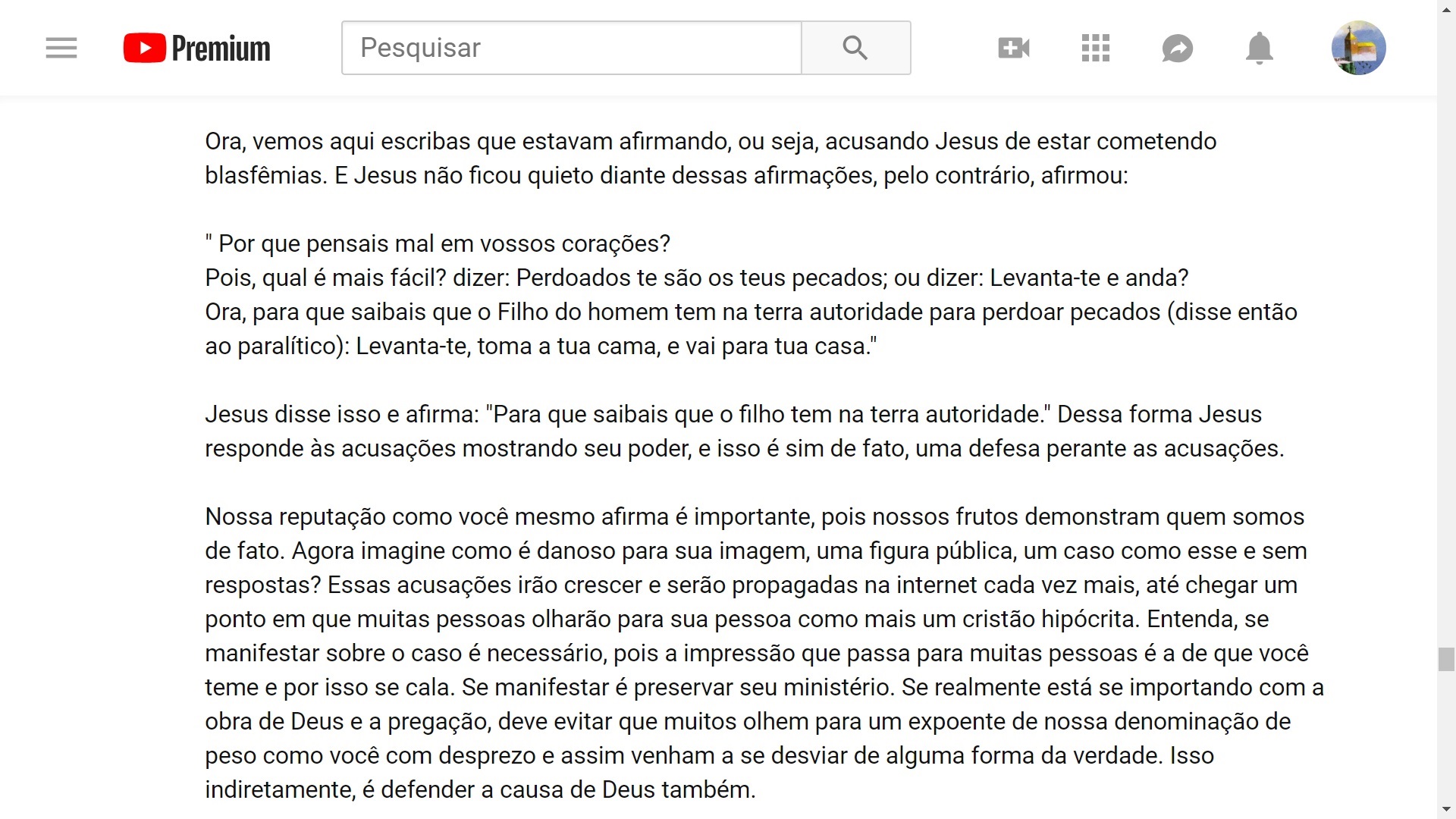Nunca vi Jesus se defendendo de nada que o acusavam, guardou silêncio até diante de Pilatos que poderia livrá-lo de seus inimigos. Ele deixava que seus frutos falassem por si. Quem não deve não teme e não há nada oculto que não venha a ser revelado. Vou deixar Deus agir e continuar a obra. Como Neemias, tenho trabalho de Deus a fazer, então desculpem-me, estou ocupado pregando o evangelho, não tenho tempo para isso…