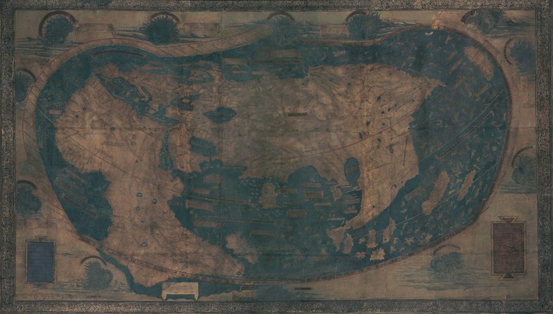 mapa em si não está datado, mas há indícios de que foi criado em 1491: cita um livro publicado naquele ano e Cristóvão Colombo pode ter consultado o mapa (ou uma cópia) antes de sua grande viagem. Quando ele desembarcou nas Bahamas, ele achou que estava perto do Japão, um erro consistente com a localização do Japão no mapa, que mostra a Ásia, a África e a Europa, mas não, infelizmente, as Américas. O mapa, feito por um alemão que trabalha em Florença chamado Henricus Martellus, há muito é ignorado porque o desbotamento obscureceu boa parte de seu texto. Até agora.