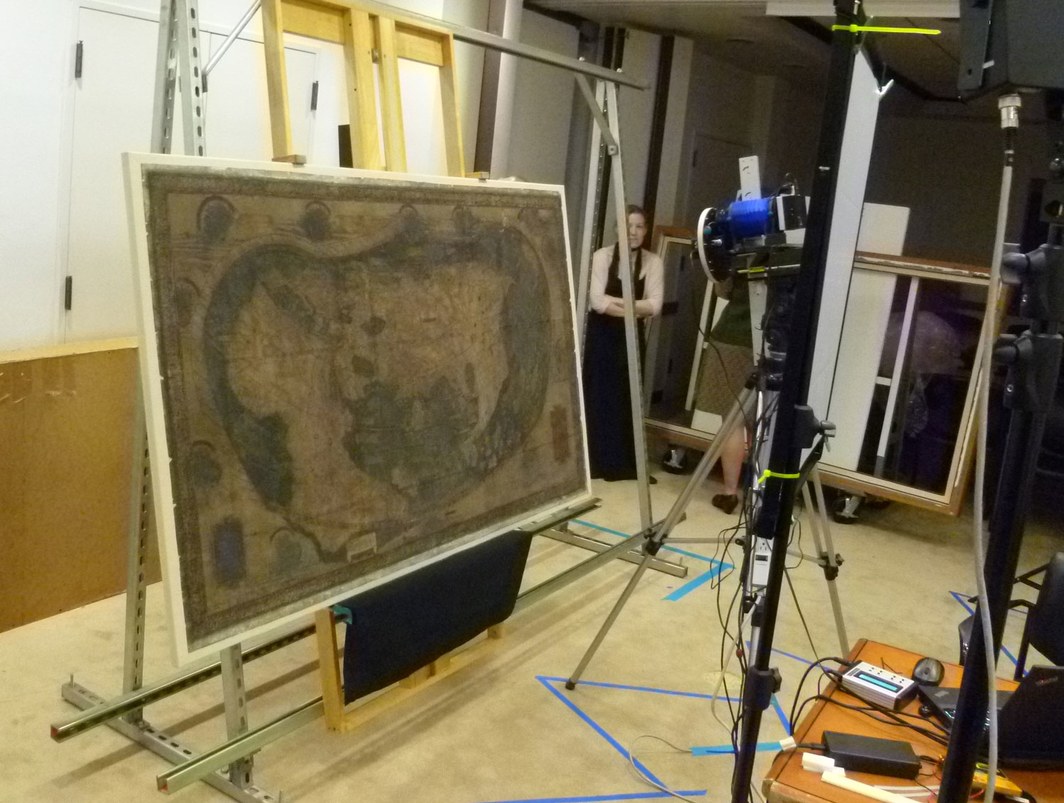 O mapa de Martellus durante as preparações para imagens multiespectrais.