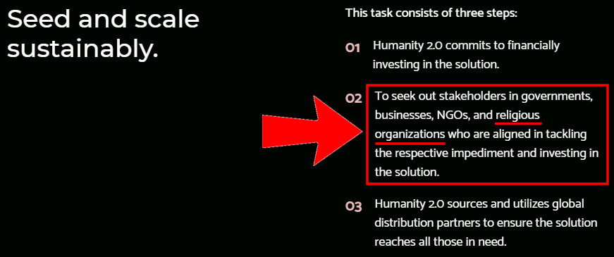 A Humanidade 2.0 é um veículo para facilitar empreendimentos colaborativos entre os setores públicos, privados e religiosos tradicionalmente isolados. Sua missão é identificar impedimentos ao progresso humano e então trabalhar intersetorialmente para removê-los. Desenvolvido em colaboração com o Dicastério para a Promoção do Desenvolvimento Humano Integral da Santa Sé e um consórcio de líderes e luminares, o Humanity 2.0 é um agente do bem comum e um crente na necessidade de um horizonte compartilhado para unir a humanidade.