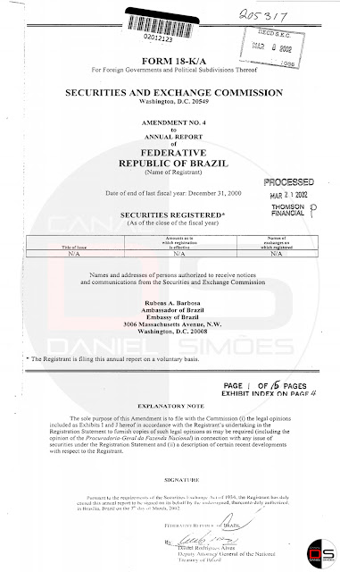 A República Federativa do Brasil é, afinal, uma Empresa-Governo registrada na Comissão de Títulos e Câmbio (SEC – EUA) desde, pelo menos, 2002 | Submissa aos EUA, está categorizada, atualmente, como país de elevadíssimo risco de investimento