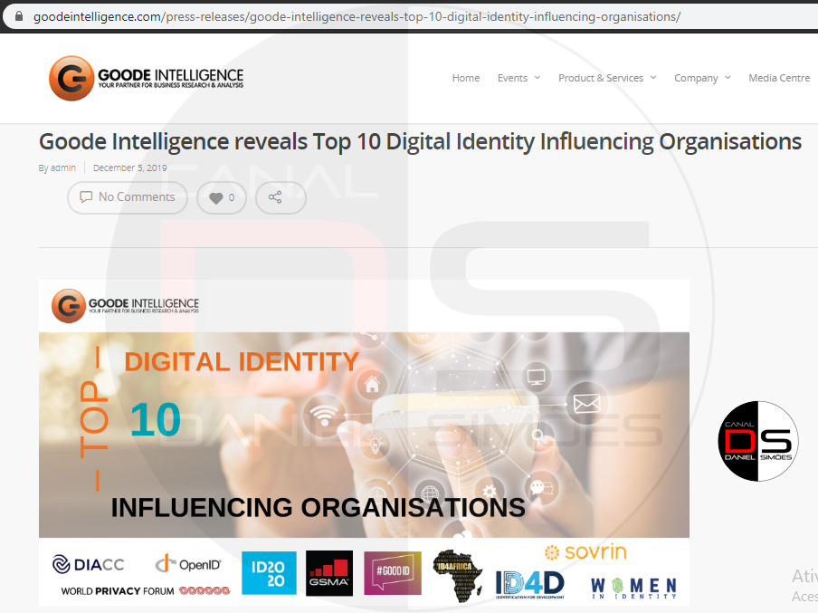 … e considerado pela Goode Intelligence como uma das 10 organizações mundiais mais influentes na questão da identidade digital, junto com: