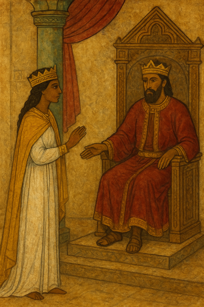 Quando o povo entrega o trono ao libertador, e este o aceita apenas até a maturidade de sua filha Makeda, revela-se outro princípio essencial do cristianismo: o poder como serviço, e não como domínio. Makeda, futura Rainha de Sabá, encarna a continuidade da luz após a queda das trevas. Sua ascensão representa o início de uma nova era — a do saber, da diplomacia e da fé.