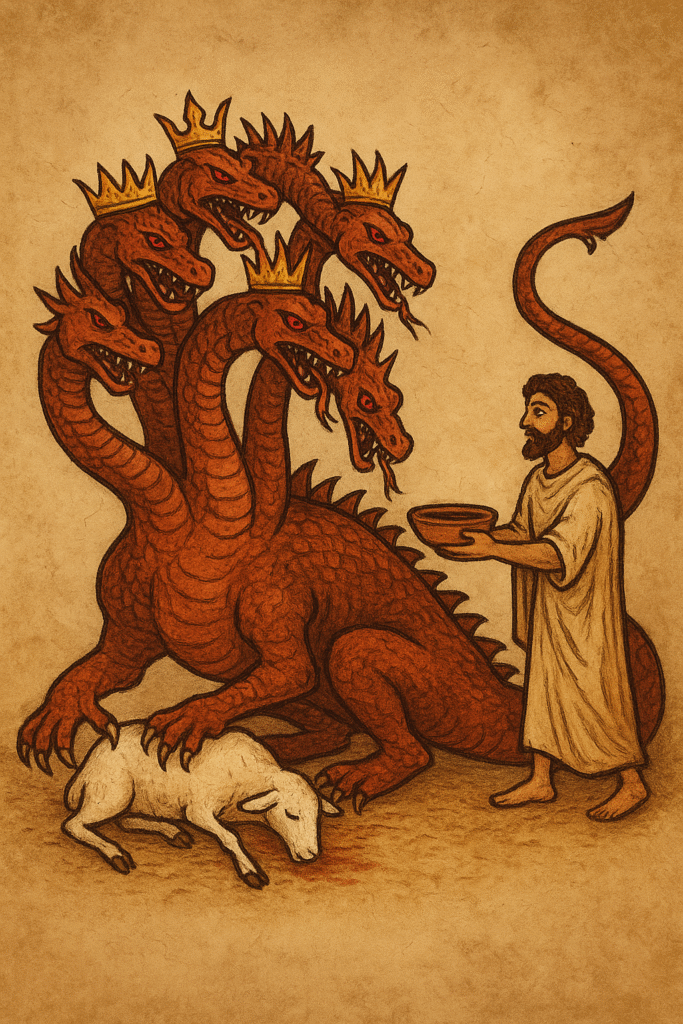 O dragão, então, não é apenas Satanás como indivíduo, mas Satanás atuando através dos impérios humanos: Egito, Babilônia, Roma e outros que tentaram destruir os fiéis. Cada cabeça e cada chifre é uma manifestação histórica da opressão. Na tradição etíope, Arwe também não era apenas um monstro: representava eras inteiras de medo, corrupção e idolatria. Ambas as visões convergem — o mal assume muitas formas, mas tem uma única origem.