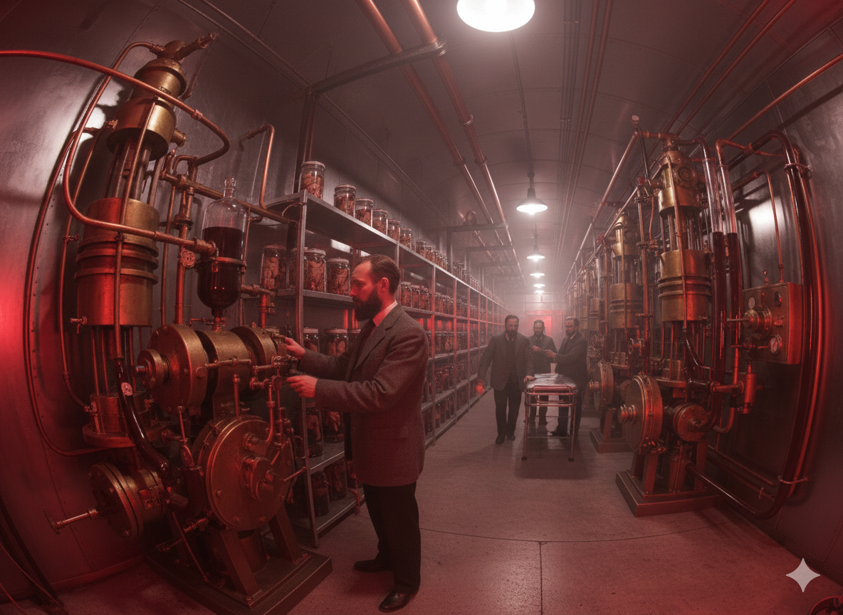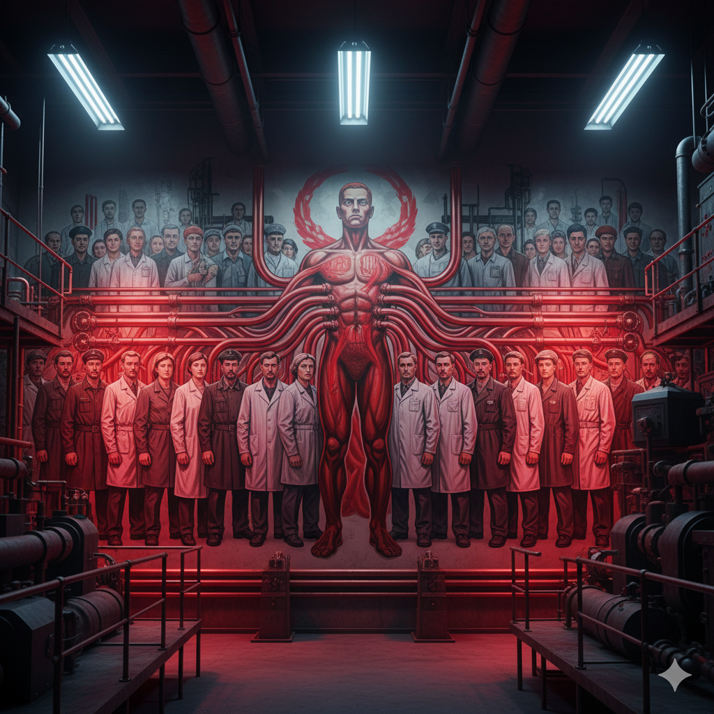 Bogdanov acreditava que a ciência deveria vencer a velhice, superar a morte e criar um corpo coletivo eterno da humanidade socialista. Nada disso era metáfora. Era teologia — uma paródia de evangelho, um sacramento ateu.
