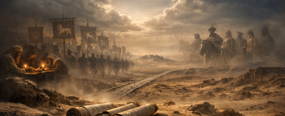 Você percebe agora, Alexandre não foi um acidente histórico, foi providência divina. Deus usou um líder pagão para criar a ferramenta linguística que espalharia a palavra. O idioma estava pronto, mas ainda faltavam duas coisas: um evento catalisador que forjaria a identidade judaica e um império que construísse a infraestrutura física.