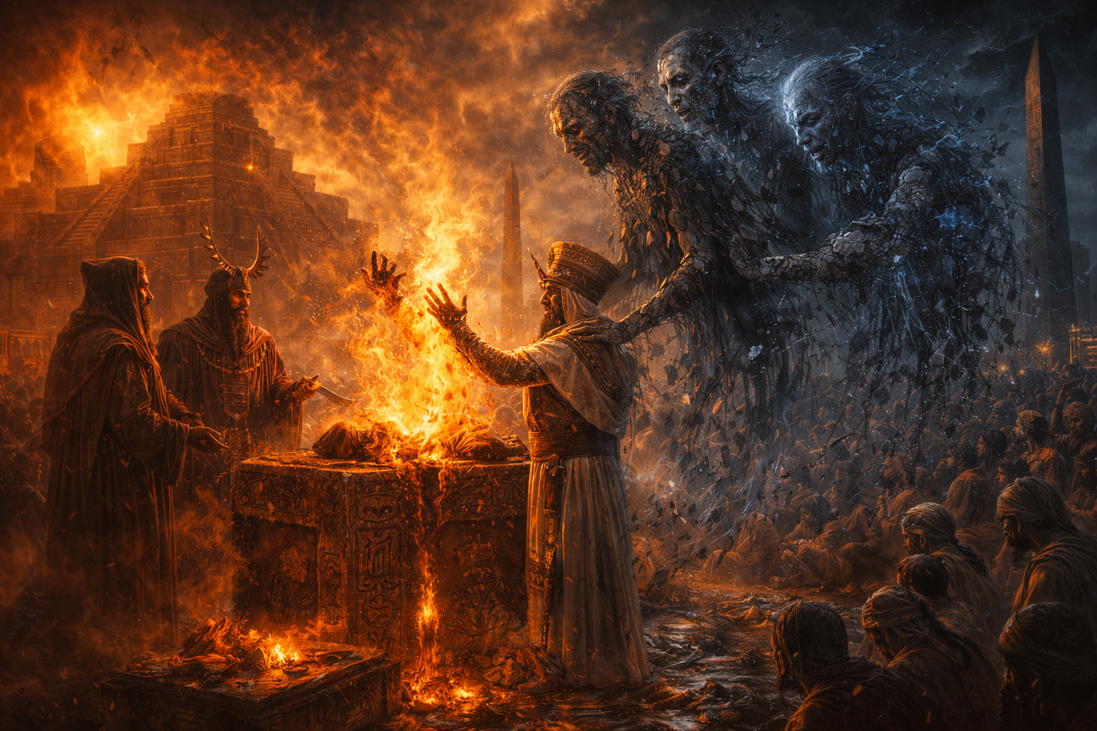 Nos tempos de Noé, a Bíblia descreve seres caídos corrompendo a humanidade, gerando violência e perversão. Após o Dilúvio, esses espíritos errantes, resultantes de corpos destruídos ou híbridos antigos, continuam a existir, buscando corpos para habitar e mentes para manipular.