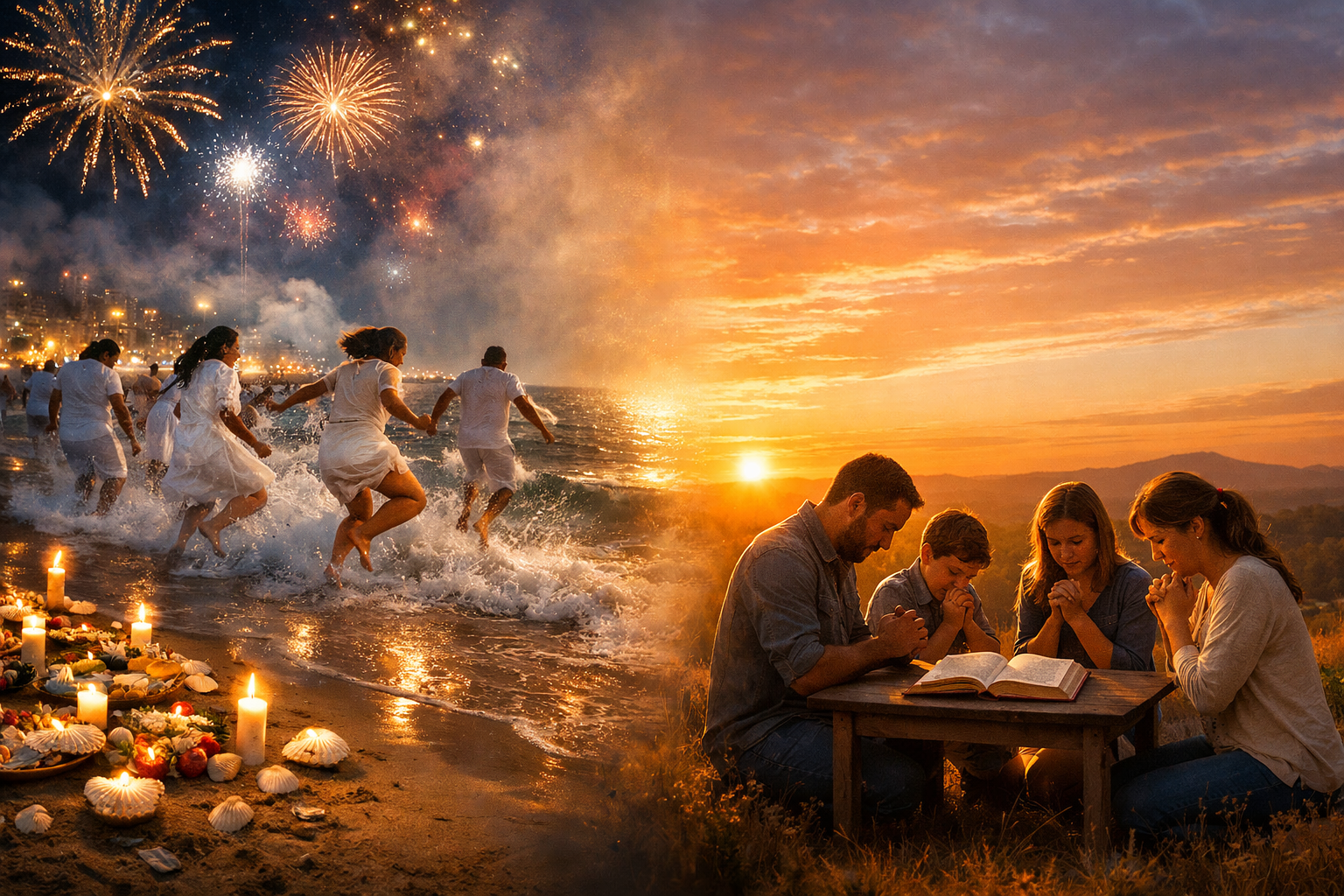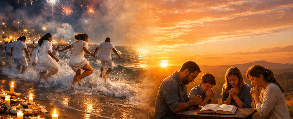 Todos os anos, quando o relógio se aproxima da meia-noite do dia 31 de dezembro, milhões de pessoas ao redor do mundo repetem os mesmos gestos: vestem roupas brancas, pulam sete ondas, comem alimentos específicos e observam fogos de artifício iluminando o céu. Poucos, no entanto, param para se perguntar por que fazem isso. De onde vieram essas práticas? O que elas realmente significam? E o que a Bíblia tem a dizer sobre tudo isso?