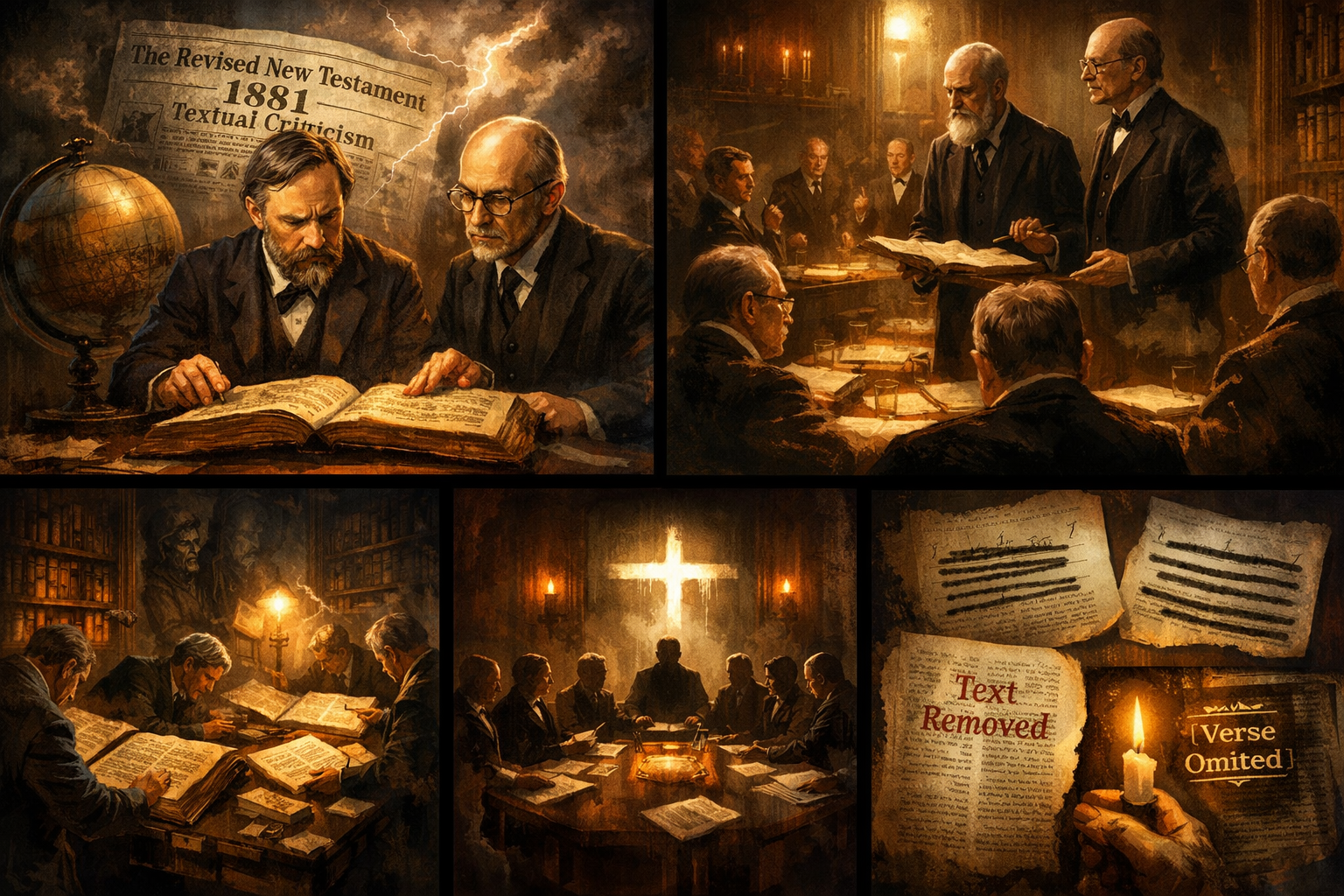 O ponto de inflexão nesse debate ocorreu em 1881, quando Brooke Westcott e Fenton Hort publicaram sua edição crítica do Novo Testamento grego. Pela primeira vez, uma edição acadêmica passou a rejeitar amplamente o texto tradicional utilizado pela igreja por mais de 1.500 anos, priorizando um conjunto restrito de manuscritos, especialmente de origem alexandrina (Egito).