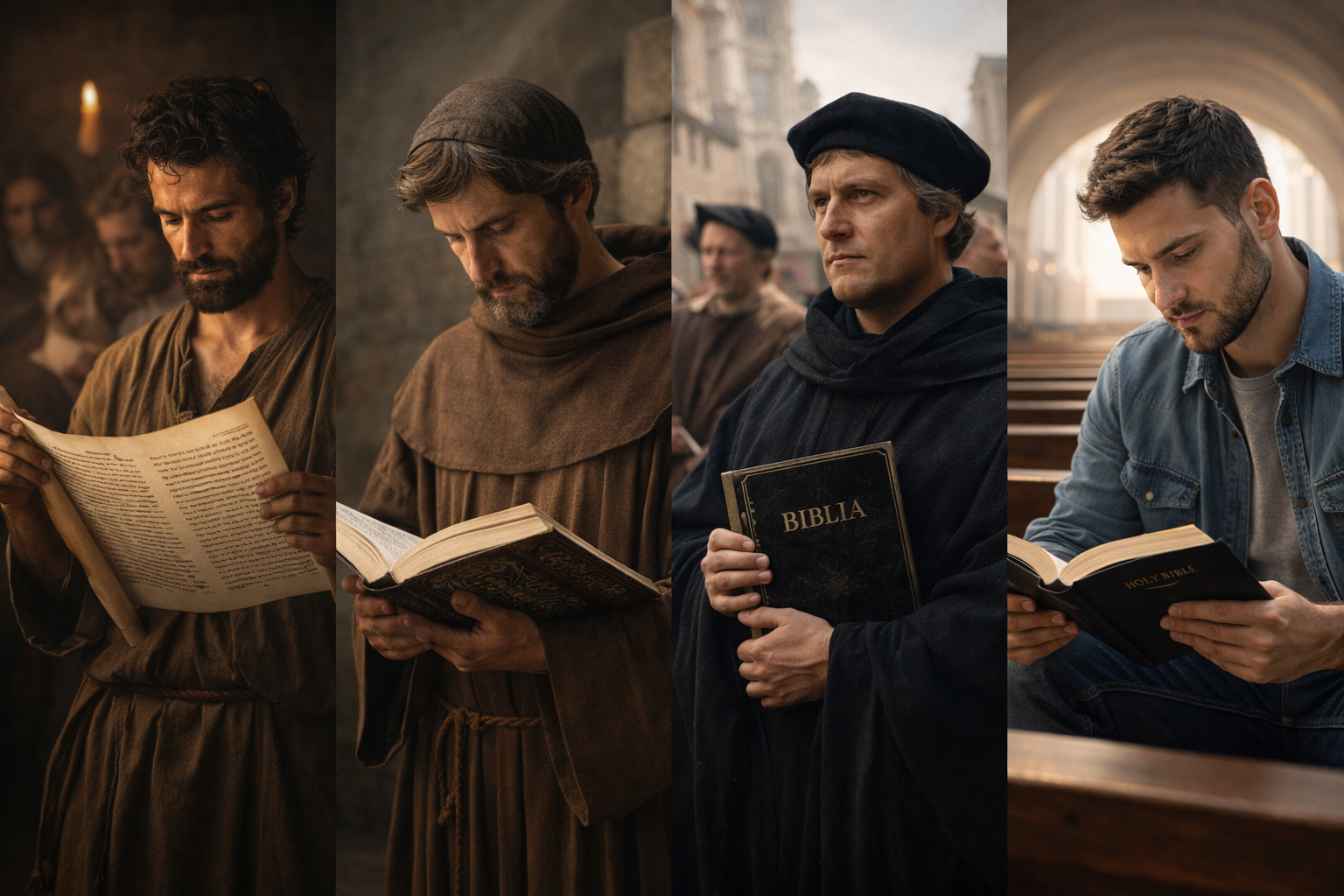 A Bíblia foi restringida, controlada, proibida. O povo foi mantido deliberadamente na ignorância. A interpretação foi monopolizada. A leitura pessoal foi combatida. A autoridade da Palavra foi substituída por decretos conciliares, tradições e estruturas eclesiásticas.