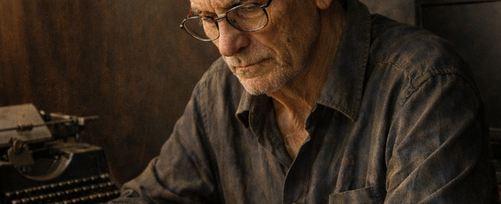 À noite, em casa, quando o barulho cessava, ele abria um caderno simples, de espiral, e escrevia à mão. Caneta Bic. Letra firme, econômica. Não escrevia para publicar. Escrevia para não enlouquecer.
