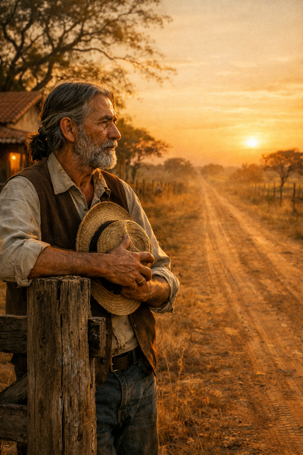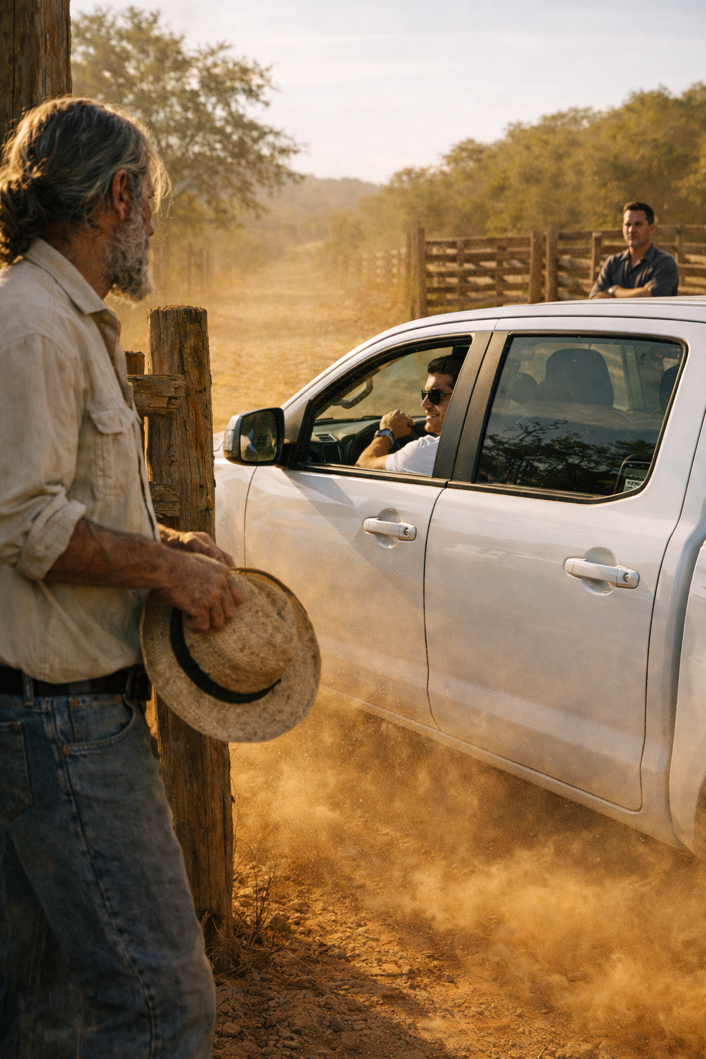 Num fim de tarde abafado, o filho pediu a parte dele. Pediu dinheiro. Pediu herança em vida. Não pediu conselho. Não pediu bênção. Pediu o que achava que era dele por direito. O Pai ouviu em silêncio. Não gritou. Não fez discurso longo. O pedido doeu. Soou como quem diz: “essa casa não me serve mais”. Mesmo assim, o Pai vendeu parte do que tinha, mexeu em conta guardada para emergência, entregou dinheiro na mão do filho. A caminhonete zero saiu levantando poeira da estrada. O ronco alto do motor parecia grito de liberdade. O Pai ficou na porteira olhando o rastro sumir no horizonte.