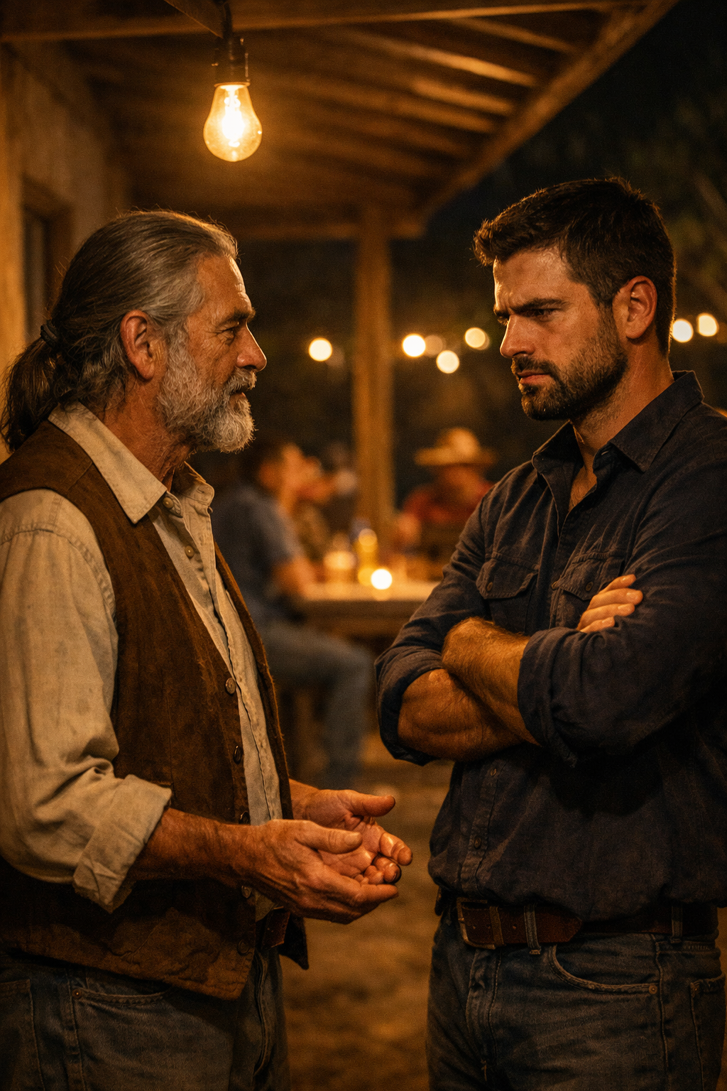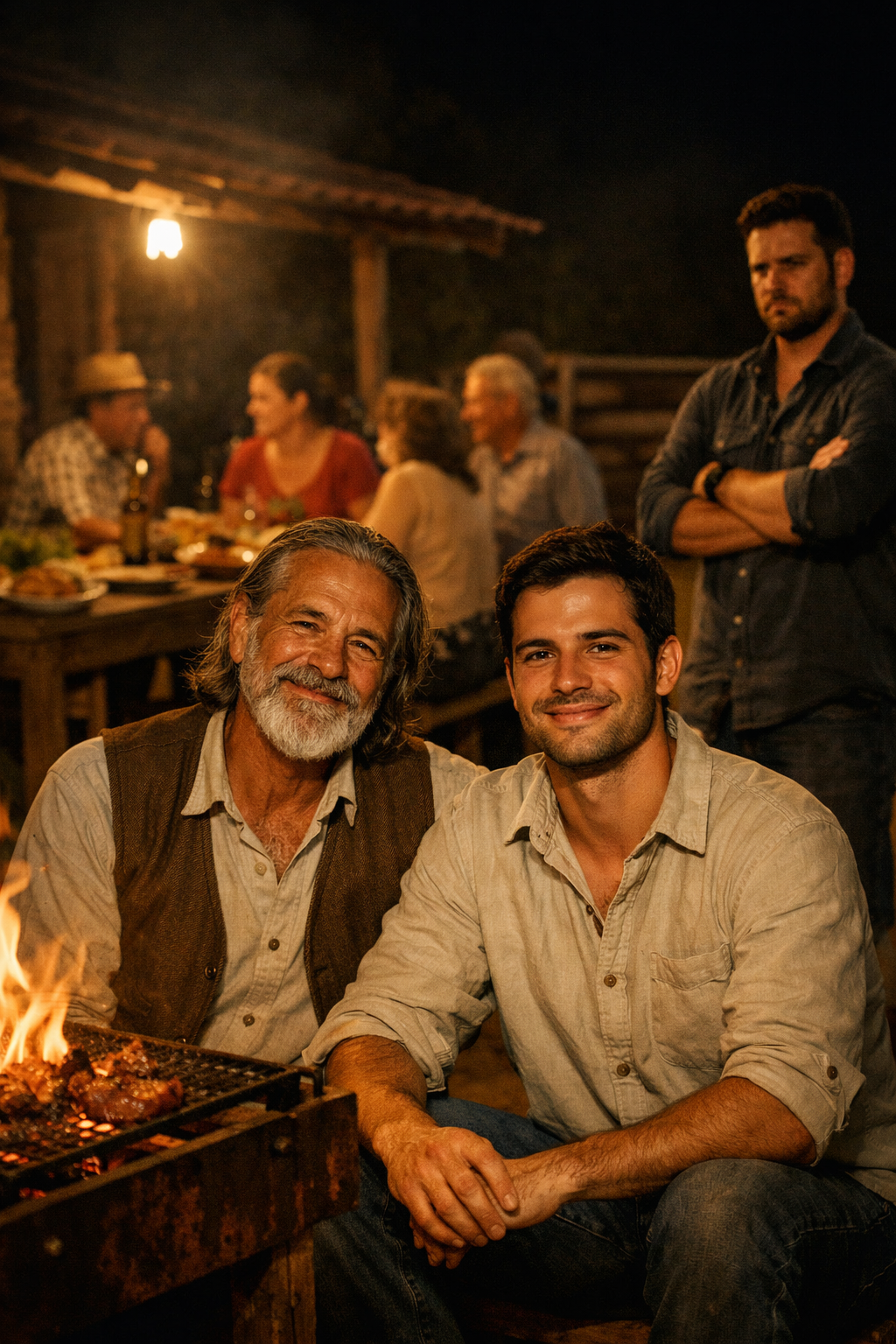 O outro filho chegou do curral e estranhou a movimentação. Viu o churrasco, ouviu risada, sentiu o cheiro da carne. Perguntou o que estava acontecendo. Quando soube que o irmão tinha voltado e que havia festa, a raiva subiu. O trabalho de anos nunca tinha virado churrasco. A fidelidade nunca tinha virado comemoração daquele tamanho. O irmão ficou do lado de fora, braços cruzados, olhando a alegria que não parecia justa.