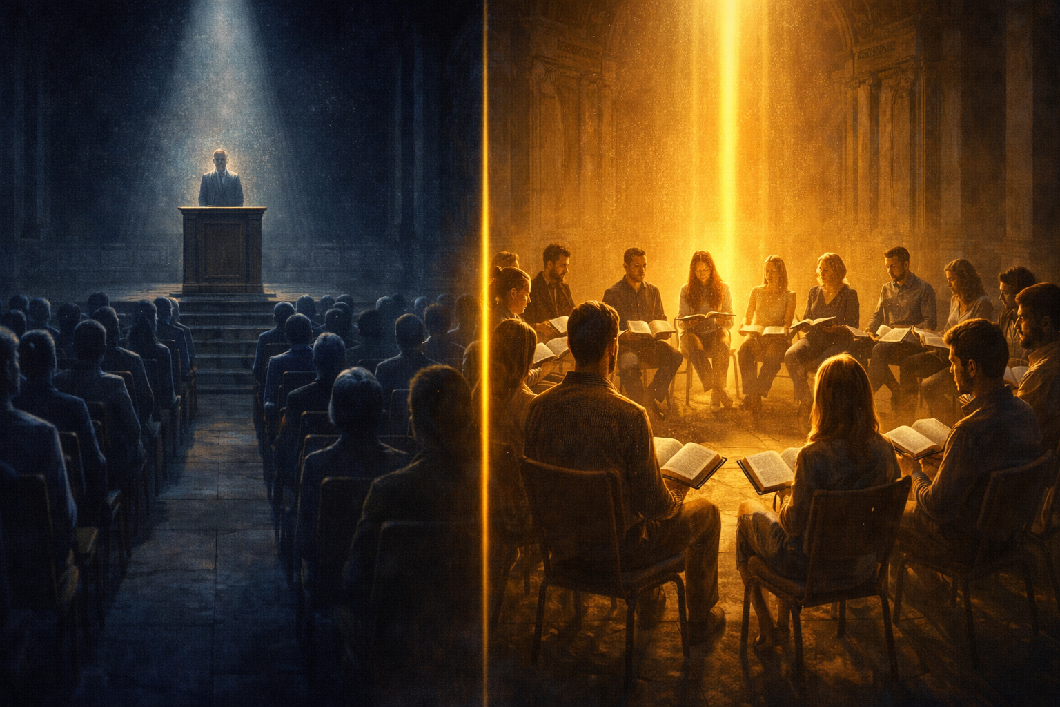 Ambientes mais participativos, estudos circulares, diálogo honesto e liberdade responsável aproximam-se mais do modelo bíblico do que estruturas que perpetuam unilateralidade absoluta.