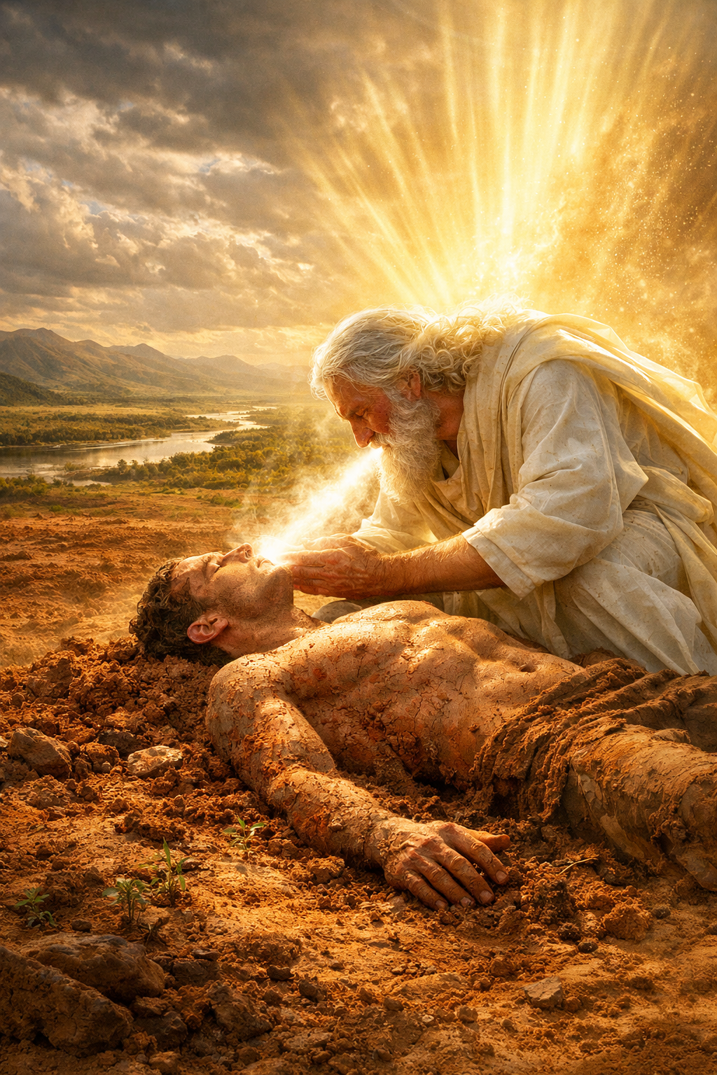 Essa ligação entre homem e solo é essencial para compreender a narrativa. A humanidade não aparece como visitante estranho dentro da criação. O homem nasce da própria terra plana primordial. Ele pertence à planície do Éden. Sua existência está ligada ao solo que ele cultiva e ao território onde foi colocado para viver.