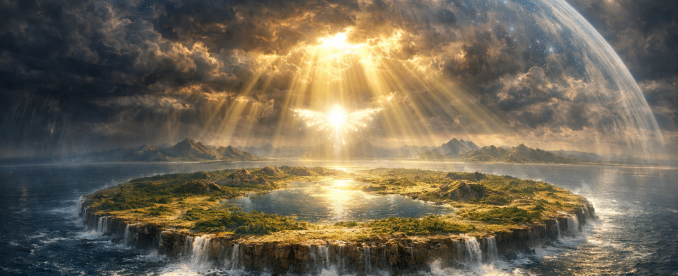 A narrativa de Gênesis começa com uma imagem poderosa. Antes que qualquer paisagem exista, antes que montanhas, rios ou cidades apareçam, o mundo é descrito como um abismo de águas. Trevas cobrem a face do abismo enquanto o Espírito de Deus paira sobre a superfície líquida.