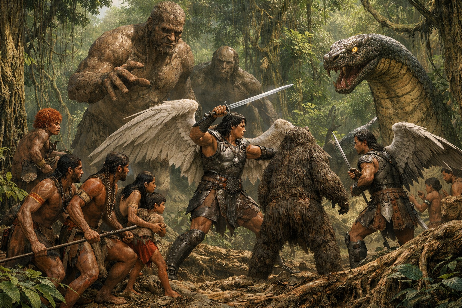 Entre os povos Tupi-Guarani, e também em diversas tradições amazônicas, encontramos relatos recorrentes de uma humanidade anterior. Não uma simples geração passada, mas uma ordem de existência diferente. Fala-se de “antigos”, de seres que viveram antes da reorganização do mundo, que possuíam força descomunal, que dominavam a terra e que não estavam sujeitos às mesmas limitações dos homens atuais.