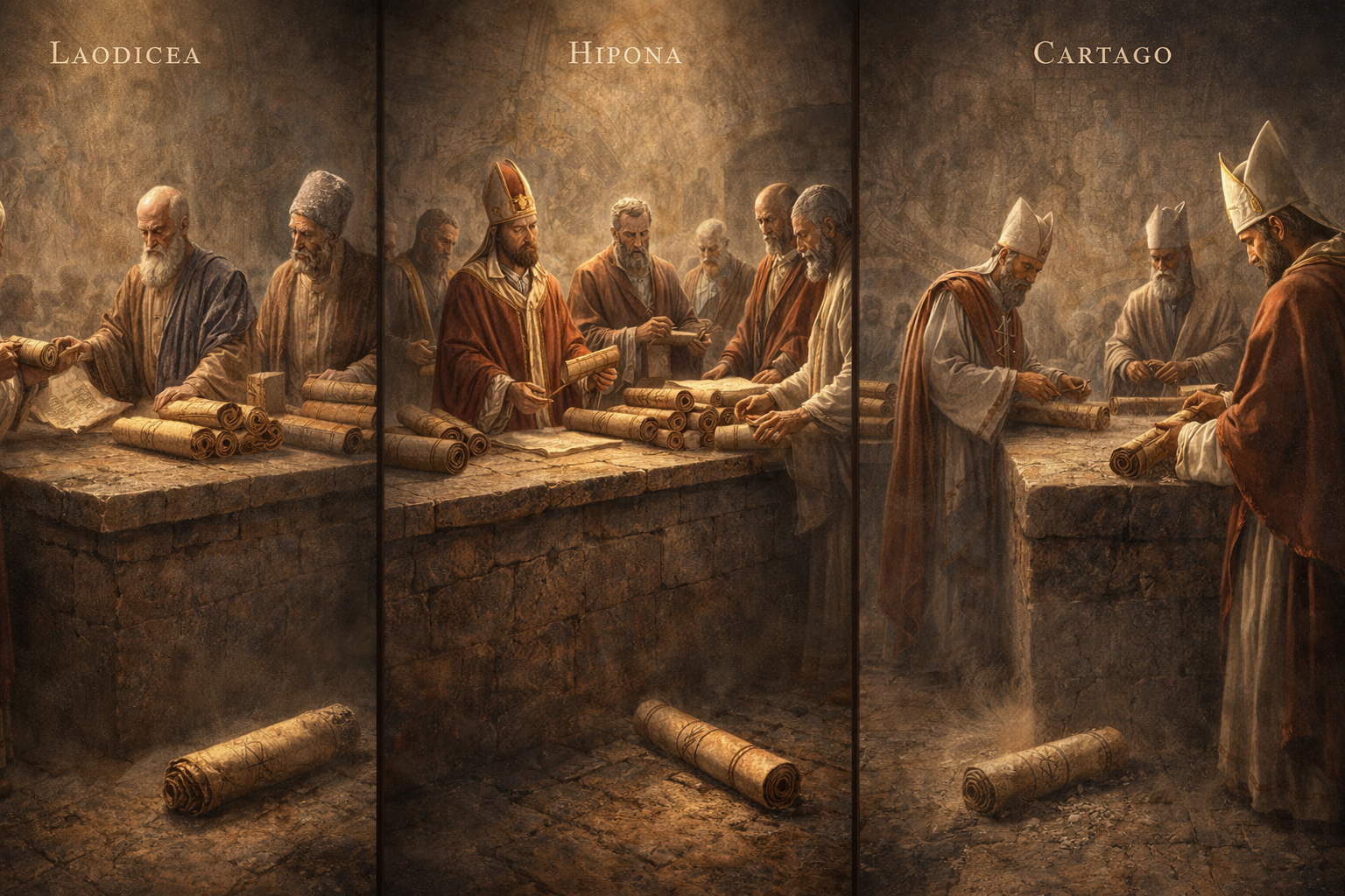 Após o Concílio de Laodiceia (século IV), outras reuniões reforçaram essa tendência. Entre elas, destacam-se os concílios de Hipona (393 d.C.) e Cartago (397 d.C.). Nessas assembleias, foi apresentada uma lista mais definida dos livros reconhecidos como canônicos — uma lista que, com pequenas variações, corresponde ao que hoje é amplamente aceito no cristianismo ocidental.