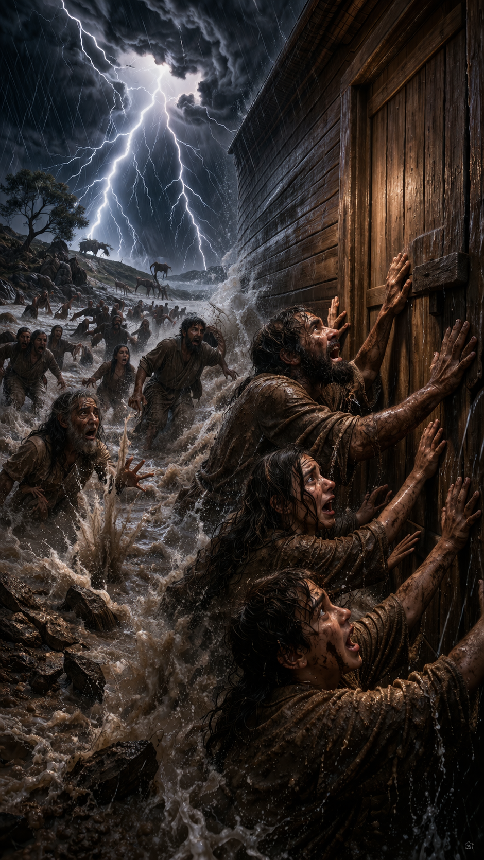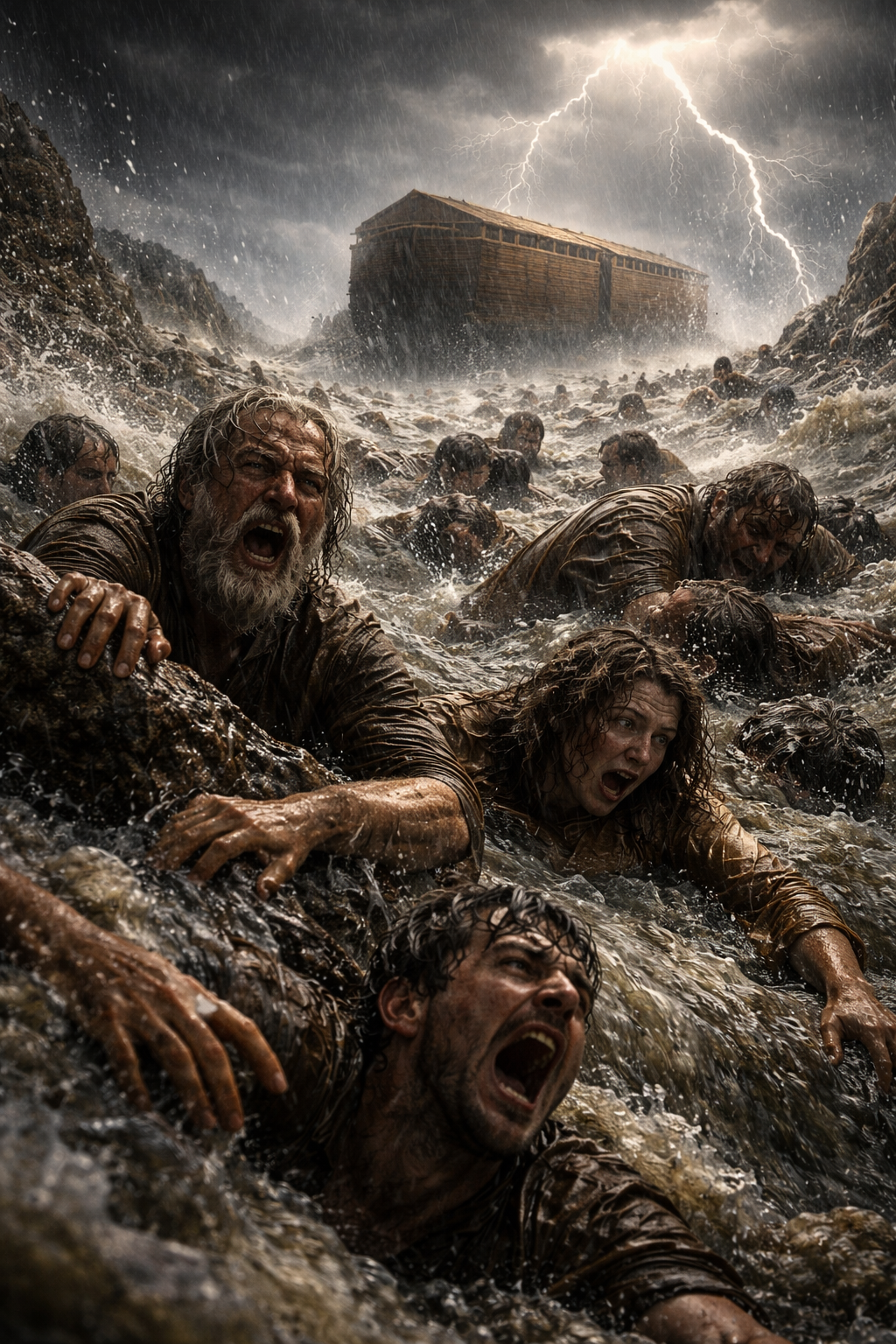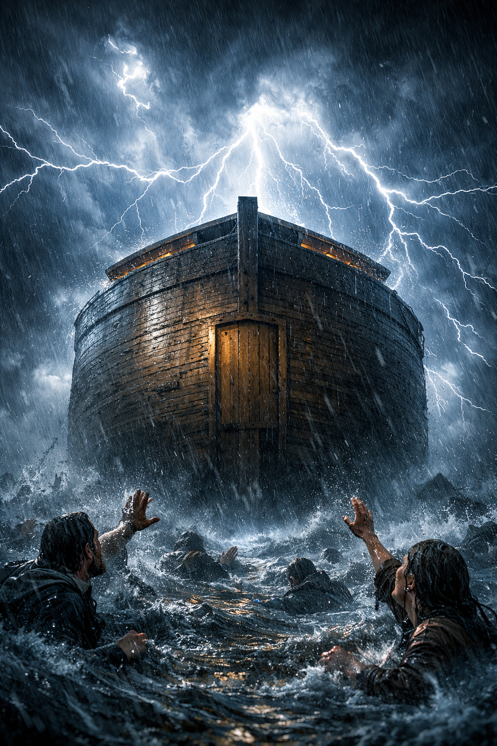 Portanto, o dilúvio não contradiz João 3:16; ele revela o que acontece quando o amor é rejeitado de forma absoluta. A arca não era apenas uma estrutura física — era a única porta de salvação disponível naquele momento histórico. Rejeitá-la não foi apenas recusar um barco, mas recusar o próprio meio estabelecido por Deus. E quando a porta se fechou, não foi Deus que ficou do lado de fora. Foi a humanidade que escolheu permanecer.