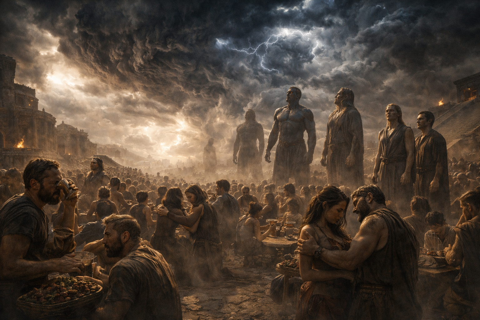A presença dos “filhos de Deus” entre as mulheres humanas não é apresentada como mito, símbolo ou alegoria, mas como um evento concreto, com consequências igualmente concretas: a corrupção da humanidade em nível estrutural. E é exatamente esse cenário que Jesus evoca ao afirmar que os últimos dias seriam “como nos dias de Noé”.