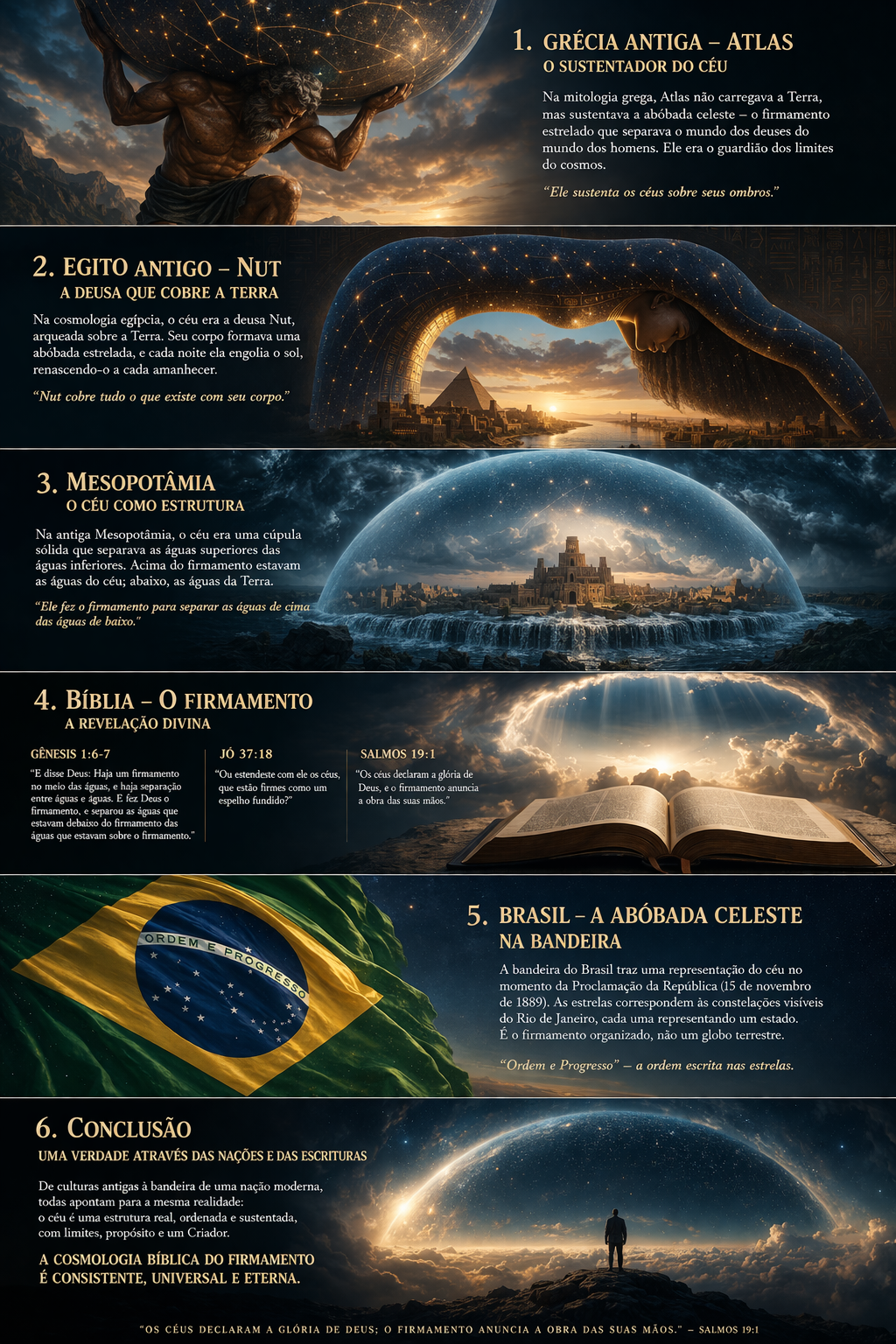 De diferentes povos antigos até símbolos modernos como a bandeira do Brasil, uma ideia atravessa séculos de história: o céu não era visto como um vazio infinito, mas como uma estrutura organizada, uma verdadeira abóbada celeste sobre a Terra.