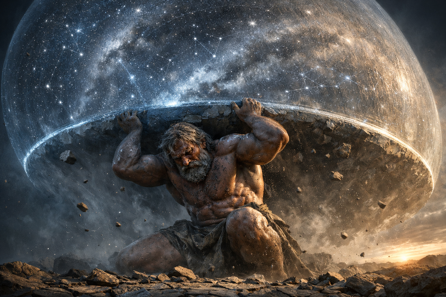 Na tradição grega, Atlas foi condenado a sustentar o céu. Esse céu não era vazio, mas uma estrutura sólida ou organizada que mantinha o mundo separado das regiões superiores.