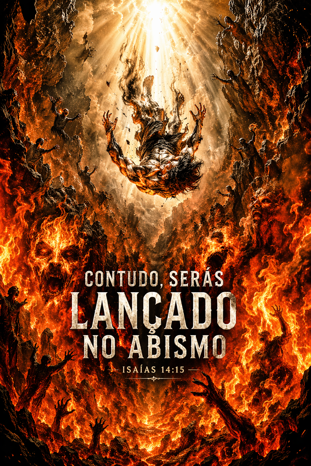 Se a pretensão descrita é de natureza celestial, a queda também o é. O texto declara: “Contudo, serás precipitado para o reino dos mortos, no mais profundo do abismo.” A linguagem aqui não descreve apenas derrota militar ou colapso de um império. Ela aponta para uma expulsão, um rebaixamento radical, uma condenação que corresponde exatamente à altura da ambição anterior. Quanto mais alto se pretende subir, mais profundo será o abismo da queda.