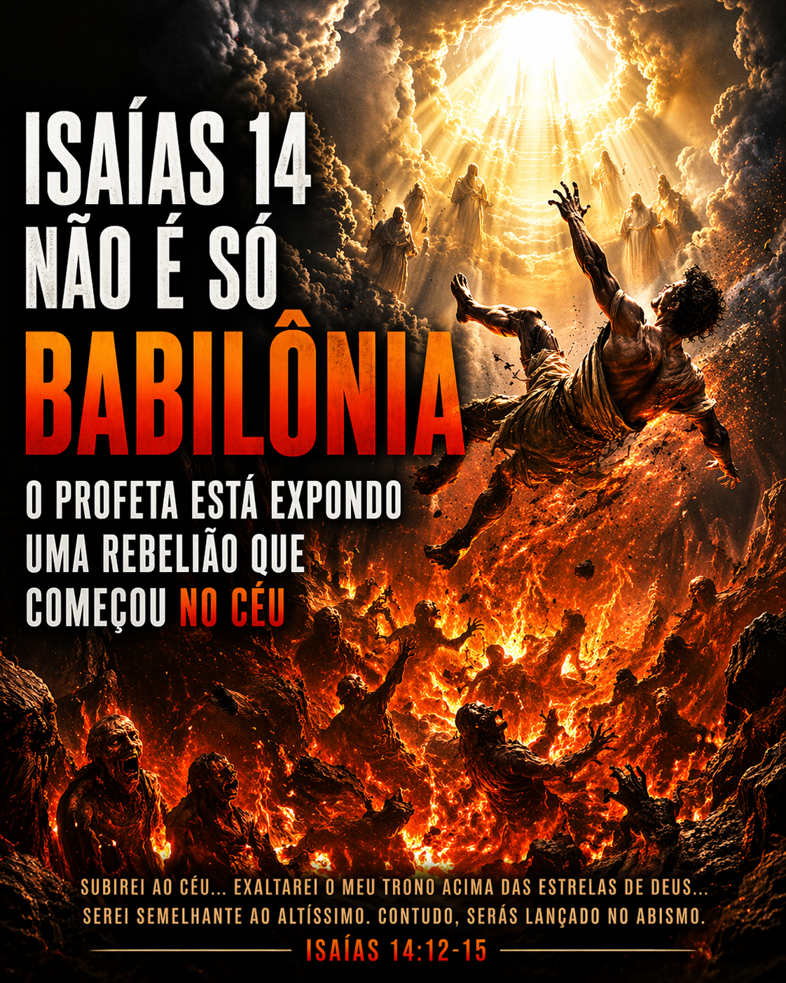 Isaías 14 confronta diretamente qualquer tentativa de separar o visível do invisível, o histórico do espiritual, o humano do cósmico. Ele declara, sem rodeios, que por trás dos tronos da terra há uma guerra que começou antes deles. E mais: revela que todo poder que ecoa as palavras “subirei”, “exaltarei” e “serei como Deus” já está, na realidade, seguindo um roteiro antigo — um roteiro que sempre termina da mesma forma.