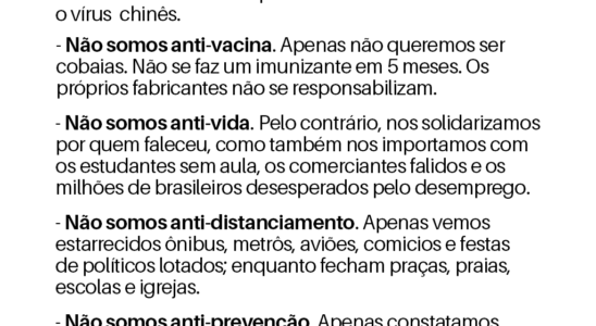 EU PENSO: A verdade liberta! – Não somos anti-ciência. Apenas sabemos que a ciência evolui e ainda pouco sabe realmente sobre o vírus chinês. – Não somos anti-vacina. Apenas não queremos…
