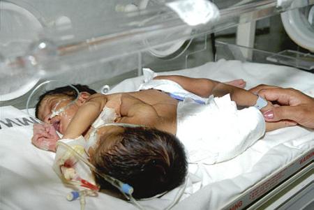 Siamesinhas recém-nascidas estão na incubadora