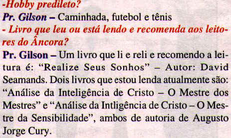 O inexperiente Gilson Grudner, distrital da Igreja Central de Campo Grande, MS, exagera em seu autoritarismo e busca de afirmação junto à igreja, tratando-a do mesmo modo como demonstra lidar com a esposa. Aconselhado por pessoas que ignoram o conselho bíblico quanto a evitar que assuntos internos sejam levados perante tribunais seculares, persegue e quer até proibir judicialmente que se aproxime da igreja um rapaz que mais do que nunca necessita de auxílio pastoral. Mas o que mais deveria preocupar o distrito e a Associação neste momento, são as recomendações de leitura feitas pelo pastor aos membros, através da última edição do jornal Âncora: