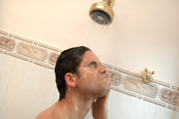 No trecho em que ele aparece tomando banho, não dá pra ver o órgão genital
