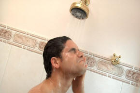 pelado, né!!! Ou vcs acham que alguém toma banho de roupa??? Um amigo meu falou