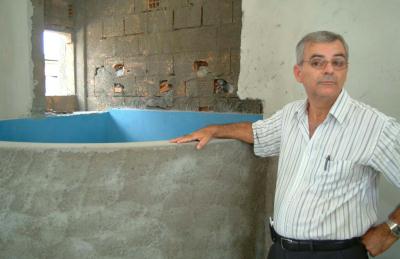 do tanque batismal nos próximos cultos. Ontem, o pastor