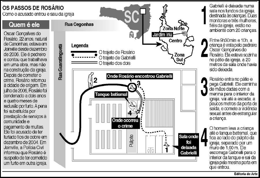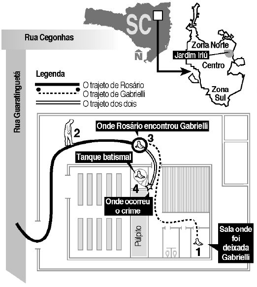 menina, ocorrida no sábado, 3, nas dependências do templo em Joinville, Norte