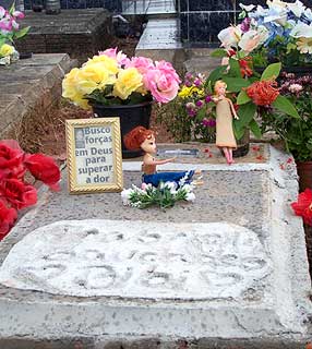 O túmulo onde está enterrada a menina Gabrielli Cristina Eichholz, no cemitério