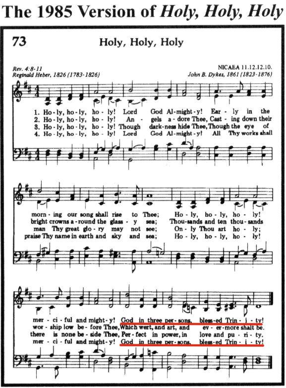 Em 1985, por ocasião da edição do Adventist Hymnal, a letra do hino 73 retornou à sua forma original, refletindo agora o novo ponto-de-vista da Igreja Adventista do Sétimo Dia acerca da trindade. Observe o último verso da primeira e quarta estrofes: Assim, fica demonstrado que entre 1941 e 1985 (ou entre 1941 e 1963, se considerarmos o segundo Cantai ao Senhor em português), a Igreja Adventista do Sétimo Dia deixou de ser não-trinitariana e tornou-se trinitariana! (Fonte: Quotes From Adventist Pioneers Concerning The Doctrine of The Trinity: Did They Believe in the Trinity?, compilado por Lynnford Beachy, Agosto de 1996, págs. 40-41.) Leia também: